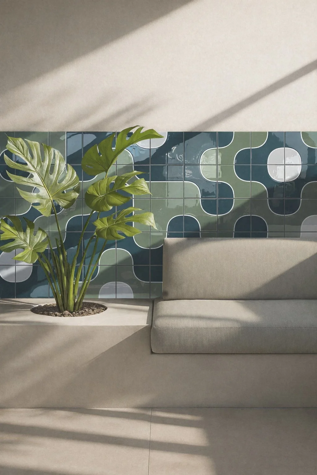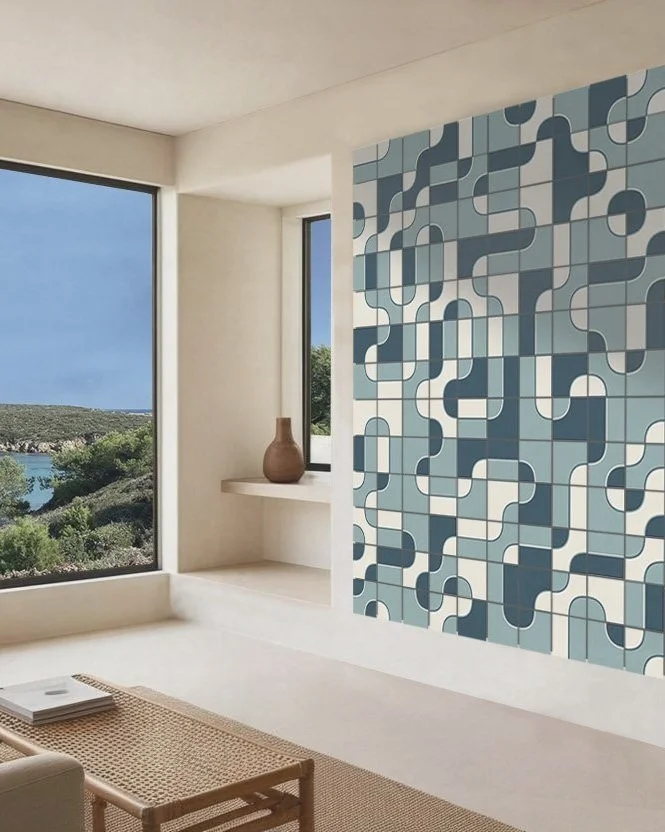 Inspired by Brazilian Modernism, the LINHA tiles translate conceptual ideas into a vibrant visual language.